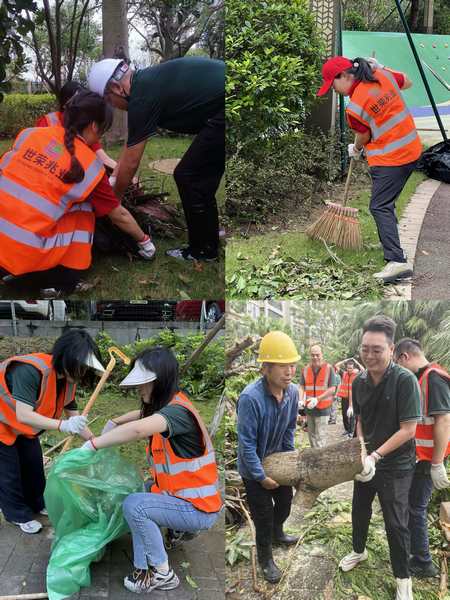 台风过境后,各小区内断枝散落、杂物堆积,环境一片狼藉,居民正常生活与辖区运转均受影响。为尽快扭转这一局面,银河galaxy迅速行动:由公司7名经营班子成员分头带队,联合从公司总部抽调的70 余名员工,共同组建起7支 “复产支援服务队”,第一时间紧急奔赴各物业项目开展支援。